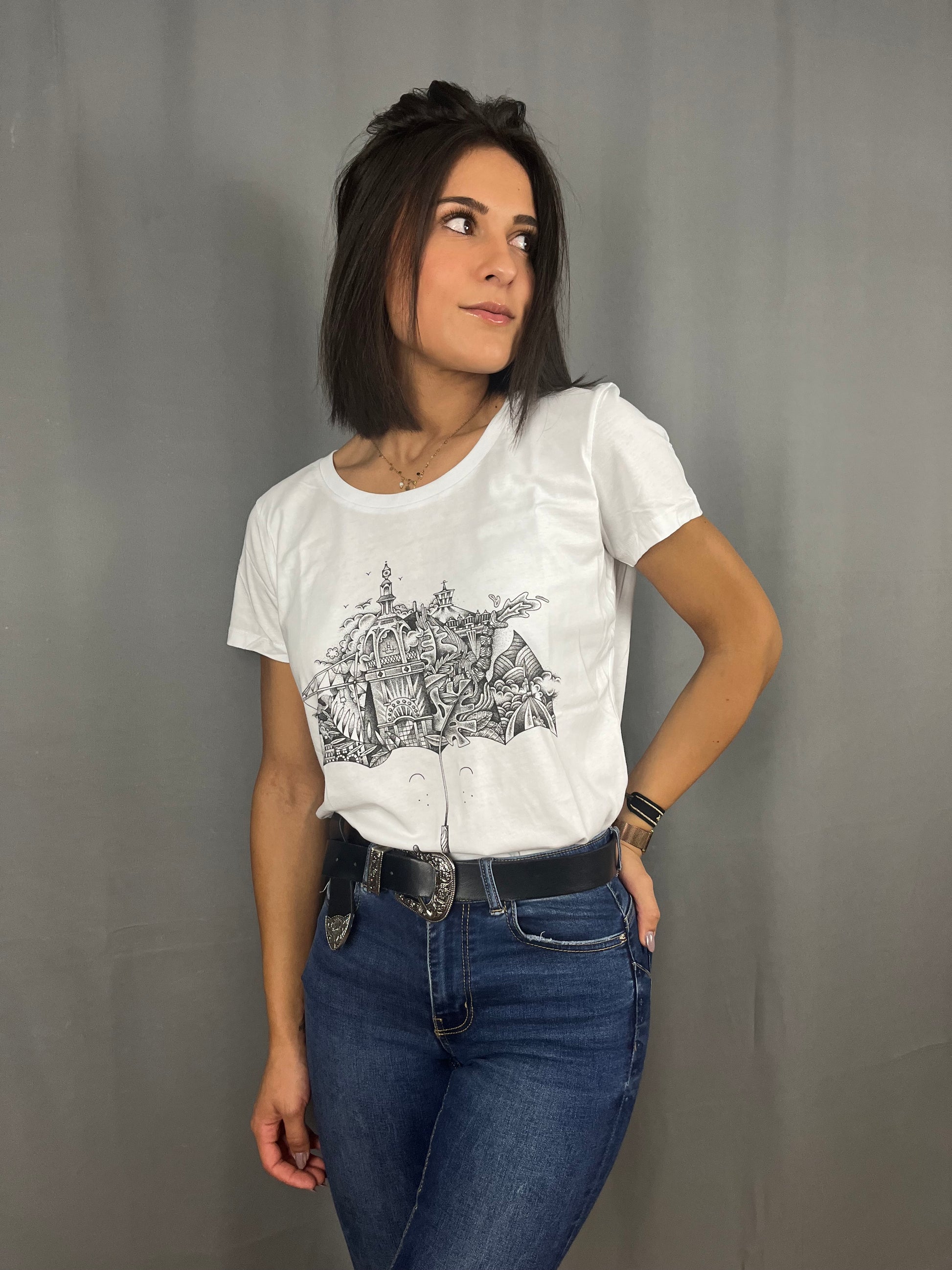 Le T-Shirt Femme Blanc avec logo central Parapluie - Terribles Nantais x The Feebles, une collaboration grandiose pour un rendu de vêtement 100% nantais magnifique !